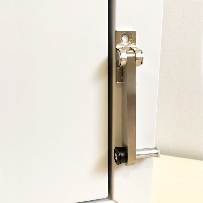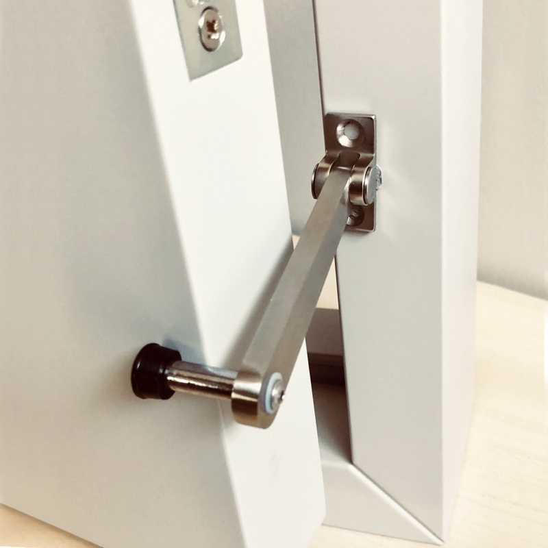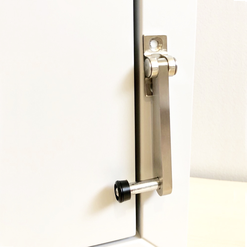 Τοποθετείται στο κάσωμα της πόρτας και περιορίζει το άνοιγμα της. Δεν γίνονται τρύπες στην πόρτα. Το συνθετικό ροδάκι κυλά επί της πόρτας χωρίς να αφήνει ίχνος και περιορίζει το άνοιγμά της όταν το στέλεχος τείνει προς την οριζόντια θέση.